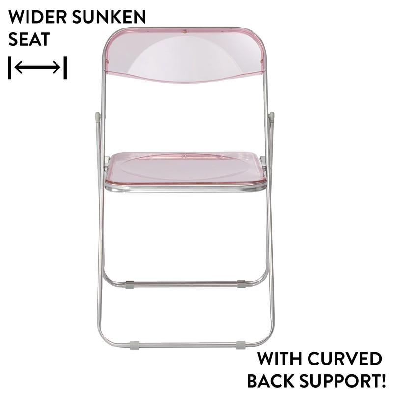 Urban Lifestyle Transparent Acrylic Modern Folding Chair with Chrome Frame, Blush