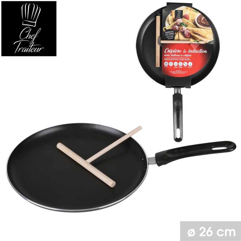 - Induction-compatible crepe pan.