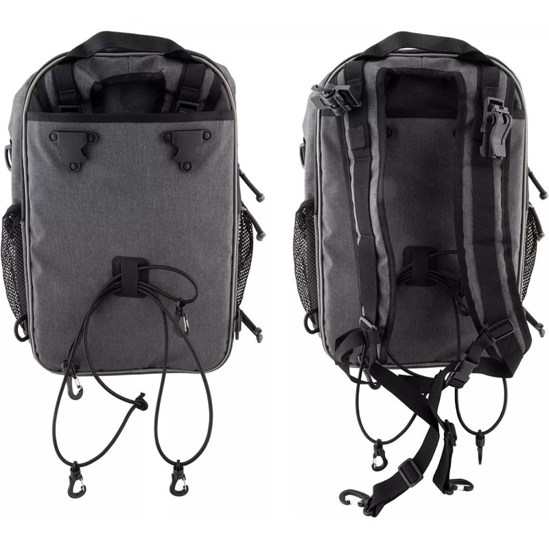 - Shoulder straps stow away in compartment when used as pannier or checking baggage on a plane