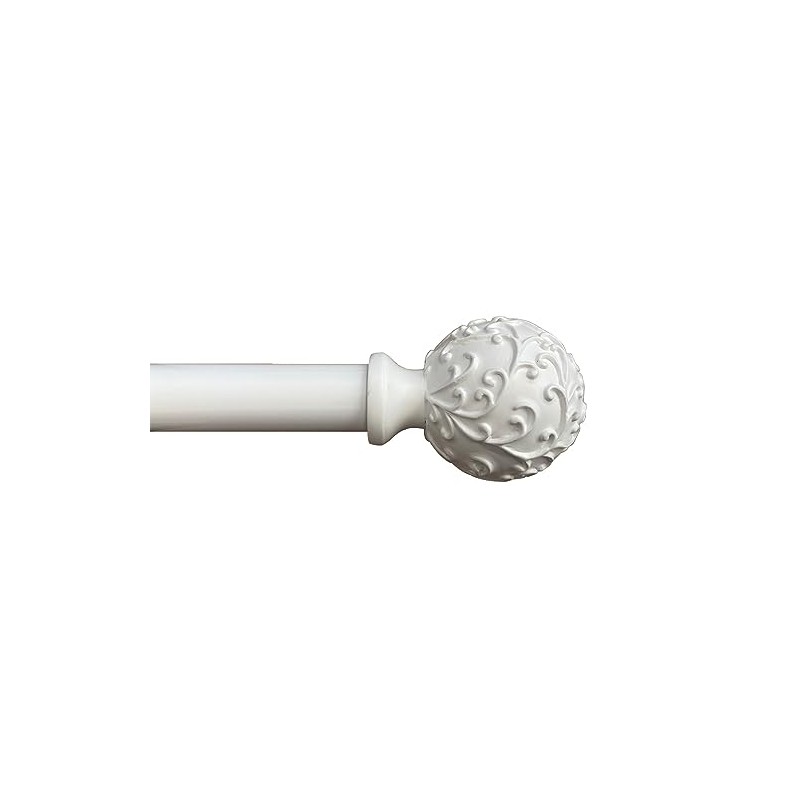 Urbanest 1-inch Diameter Vine Scroll Ball Adjustable Single Drapery Curtain Rod, 28-inch to 48-inch, Gilded White