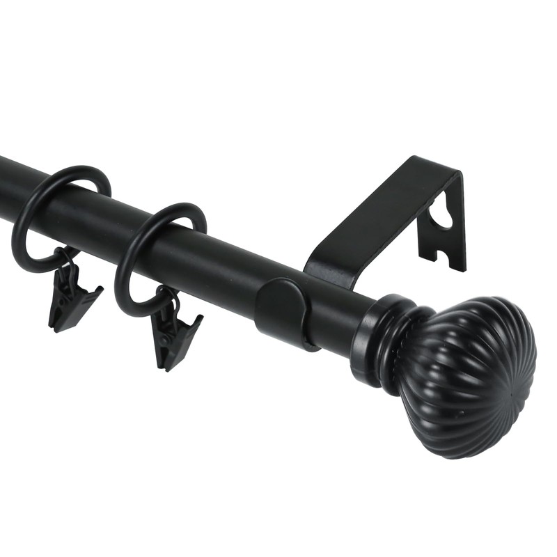 Urbanest Fluted Ball Adjustable Single Drapery Curtain Rod Set with 16 Rings, 5/8", 48"-84", Black