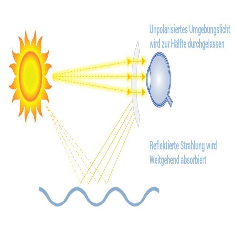 - Polarising: filters light reflections in glare protection class 3 (sun protection filter) and 100% of UV radiation (UV 400)