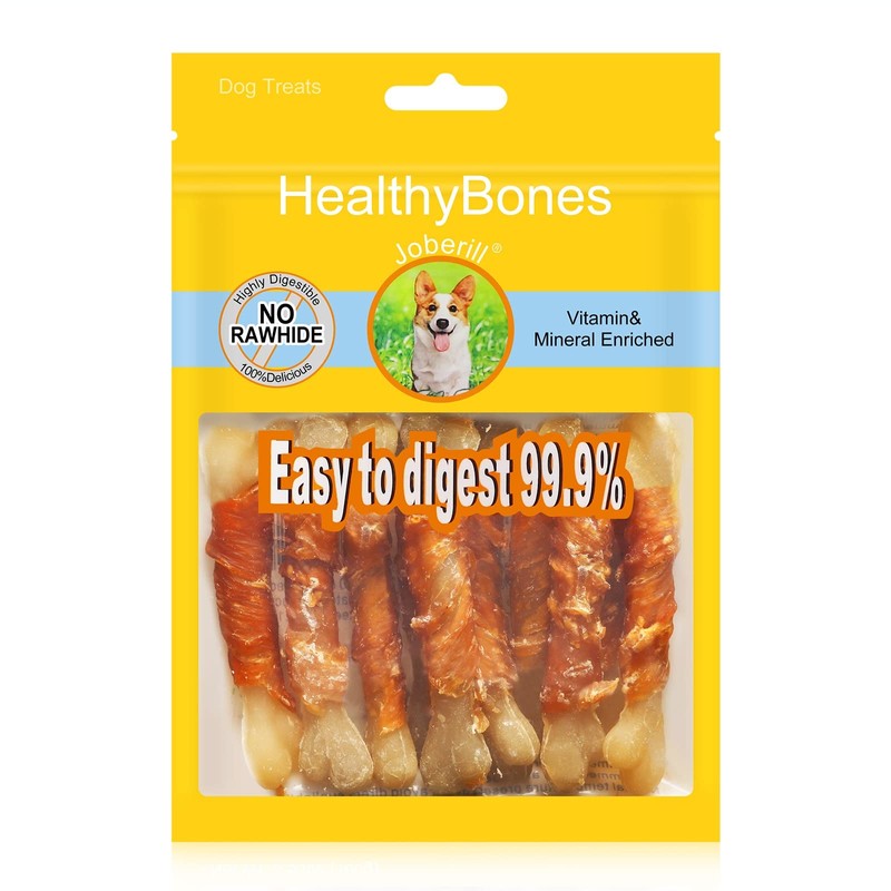 HealthyBones Rawhide Free Healthy Foods for Pug and Other Small Companion Dogs , Chicken Wrapped Sticks Dog Foods, Soft Chewy Foods for Training Rewards HEALTHYBONES Dog Foods We provide the highest quality products in strict compliance with local food safety standards. All products are composed of pure natural raw materials, after processing into product, we will also carry out a series of rigorous testing and maintain our high standards in the packaging. Enriched With Protein Chicken contains a relatively high protein, which is easy to digest and absorb and helpful for dog’s gastrointestinal absorption. Natural Ingredients - Rawhide Free RAWHIDE FREE dog chews have all the benefits of a Rawhide Chew without the RAWHIDE – chewing helps maintain healthy teeth. Chicken Sticks are rich in protein, vitamins and minerals which can nourish the dog’s hair, improve the dog’s digestion, and make your dog more energetic than ever before. Feeding Tips It is not suitable for puppies under 3 months. Observation is recommended when giving Foods or chews. Please provide dogs with plenty of clean drinking water. Please feed as soon as possible after opening.