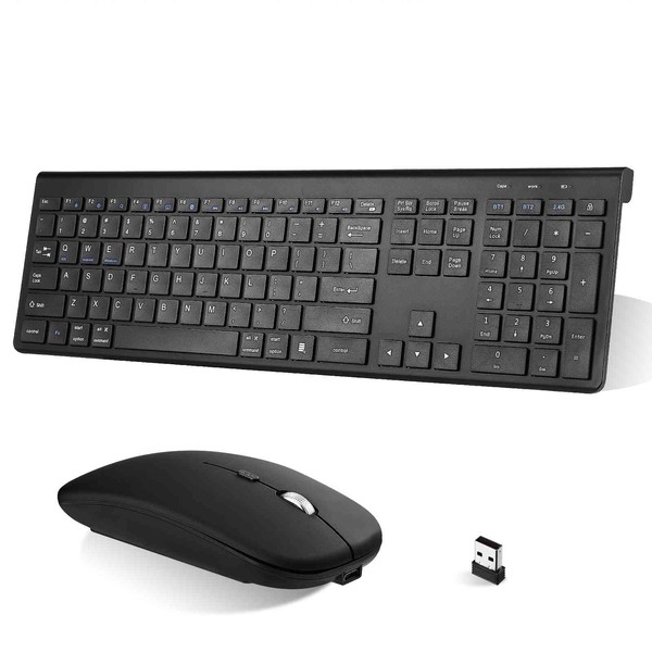 UrbanX Plug and Play Compact Rechargeable Wireless Bluetooth Full Size Keyboard and Mouse Combo for Sony X95J TV supports Windows, macOS, iPadOS, Android, PC, Mac, Laptop, Smartphone, Tablet -Black