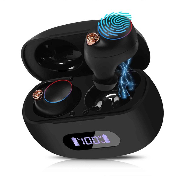 UrbanX True Wireless Bluetooth Earbuds + Charging Case, Black, Dual Connect, IPX5 Water Resistance, Bluetooth 5.2 Connection, Balanced, Bass Boost Compatible with Oppo Reno2 Z