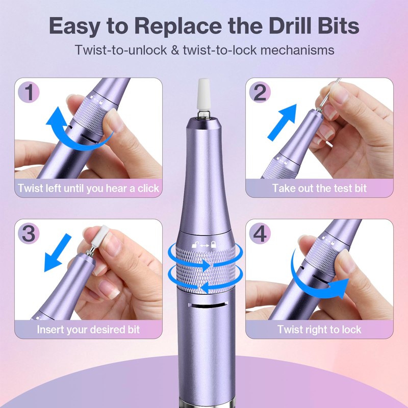 • 【Multifunktionaler Nagelschleifer für Salon und Heimgebrauch】Elektrische Nagelfräser professionell set von enthält 12 verschiedene Nagelbohrer und 36 Schleifpapierkreise, die für verschiedene Zwecke geeignet sind, wie Schleifen, Schnitzen, Schneiden, Polieren, Entfernen von natürlichen Acrylnägeln, Gel-Nagellack, Dip-Pudernägeln, Hornhaut, Nagelhaut und mehr. Diese Nagelwerkzeuge sind ideal für professionelle Nageltechniker zur Verwendung in Nagelstudios und für Anfänger zur Verwendung zu Hause