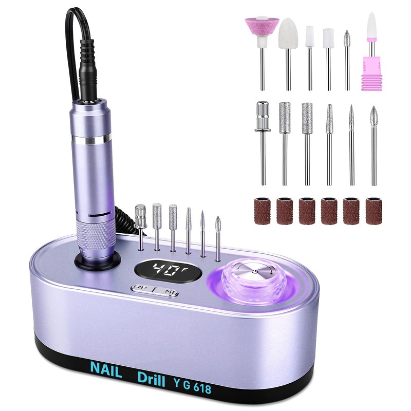 Urbuti Elektrische Nagelfeile Nagelfräser Professioneller, 40000U/Min, LCD Maniküre Pediküre Set mit Multifunktionale Basis Elektrisch Tragbares Design Beleuchtet Touch-Button-Steuerung Hellviolett