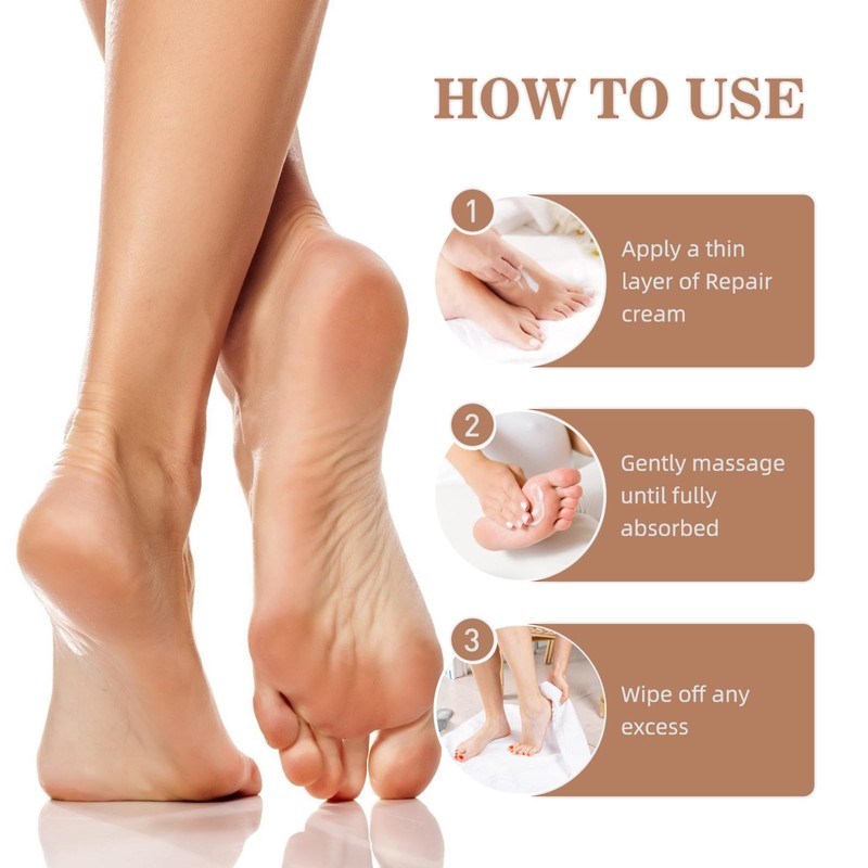 Step1:Please clean and dry your feet before using this foot cream for cracked heels and dry skin.