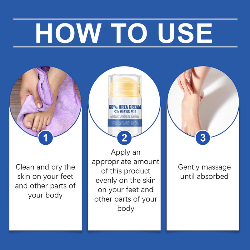- 【New Upgraded Urea Foot Cream 60 Percent】Heel cream has been upgraded from the original 40% to 60%, which can provide more targeted relief for dry and rough skin; it is specially designed to soften hard dead skin and heels, deeply moisturize dry skin, improve roughness, cracking, prevent moisture loss and stimulate new cell growth.