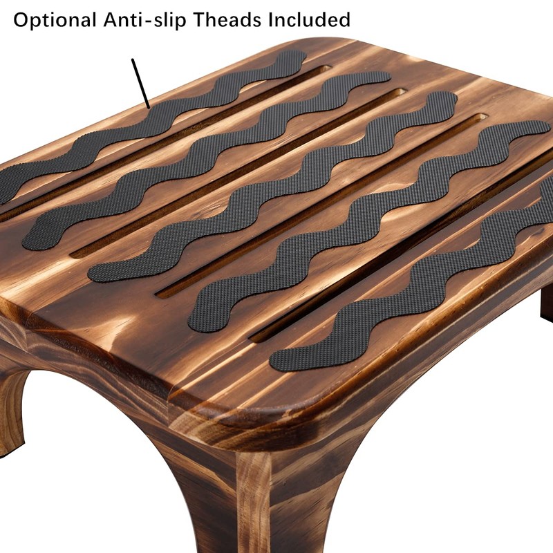 - With 5 pack black non-slip treads which you can apply or not.Our pre-cut black treads reduce slippery areas and increase safety by covering a larger stool surface. It is easy to install. Clean the surface first! Then peel and stick.