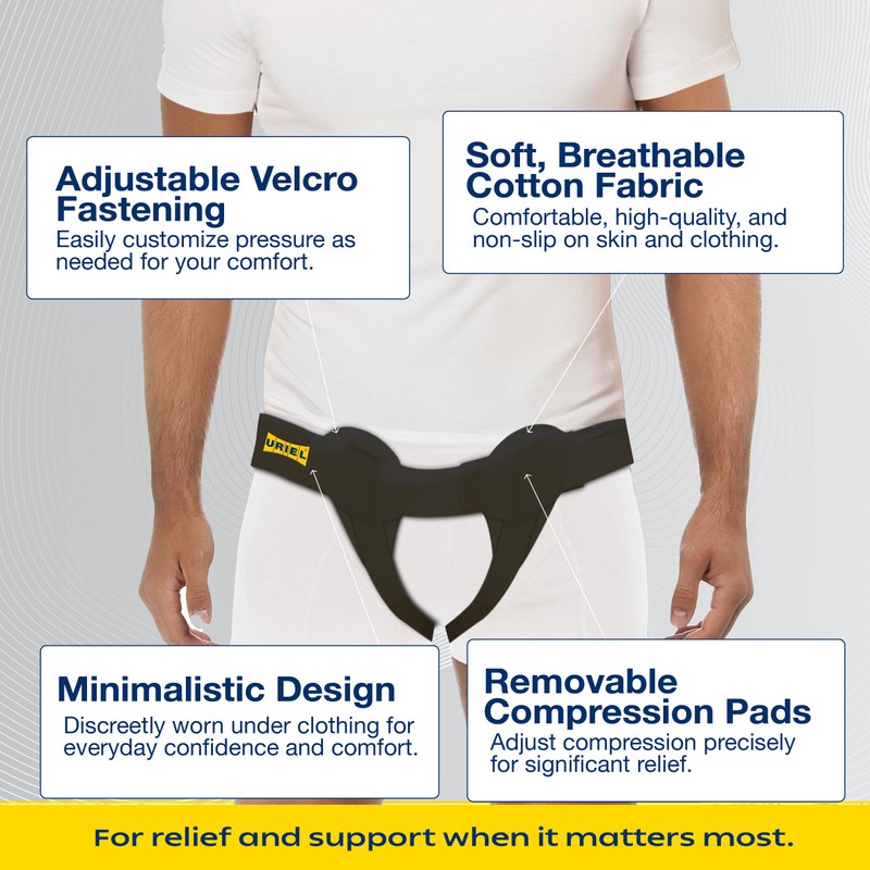 - Reliable Hernia Support: The URIEL Hernia Belt for men Inguinal provides effective support and pressure to keep your hernia in place, offering immediate relief from discomfort. This hernia belt for men inguinal is ideal for men seeking a non-invasive solution and effective inguinal hernia support.