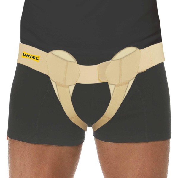 URIEL Double Sided Inguinal Hernia Belts for Men - Hernia Support for Men, Pre and Post Surgery Truss, Size Large, Cream (39.8-44.5 Inches)