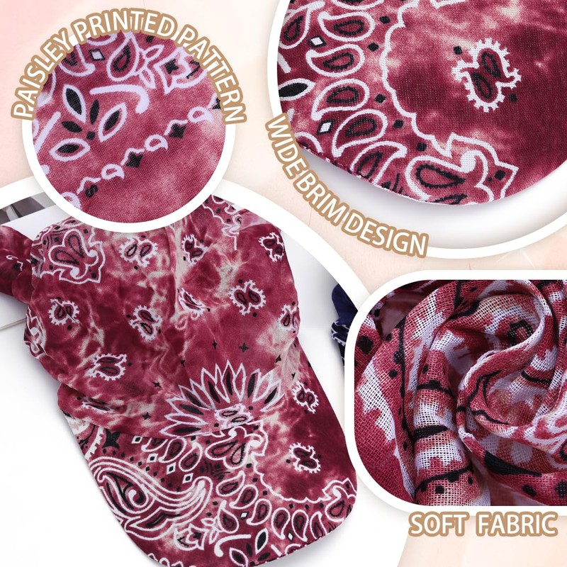 Urieo 2 pcs Boho Brim Bandana Cap Paisley Bandana Head Scarf Hat Sun Visor Printed Tied Headwear Outdoor Beach Newsboy Cap for Women Blue