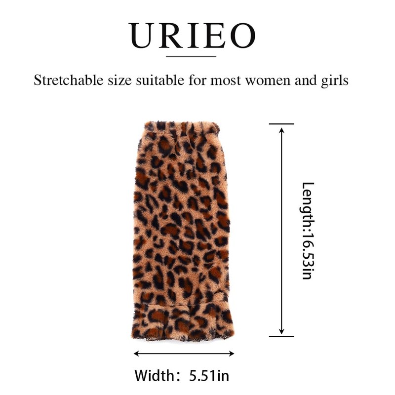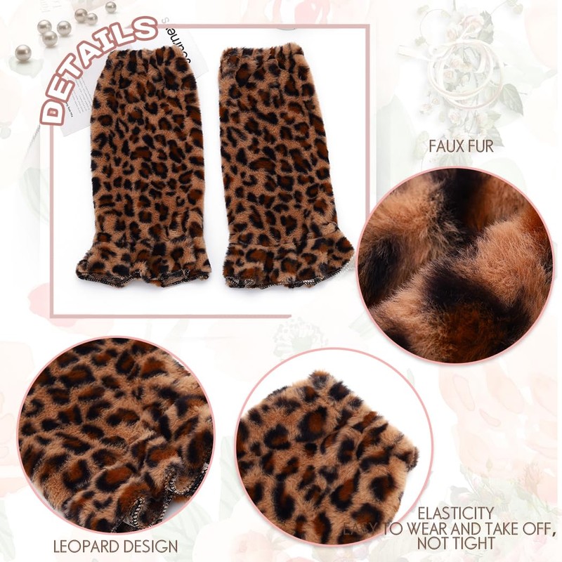 Urieo Faux Fur Warm Leg Warmers Furry Coffee Leopard Print Long Footless Socks Fluffy Boot Cuff Winter Knit Fuzzy High Leg Sleeves for Women