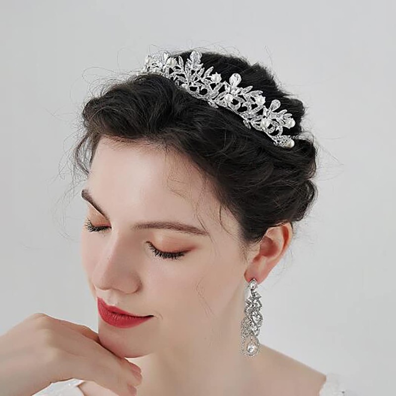 - Crystal pearl queen tiara is made by high quality alloy, top-grade rhinestones and faux pearls.