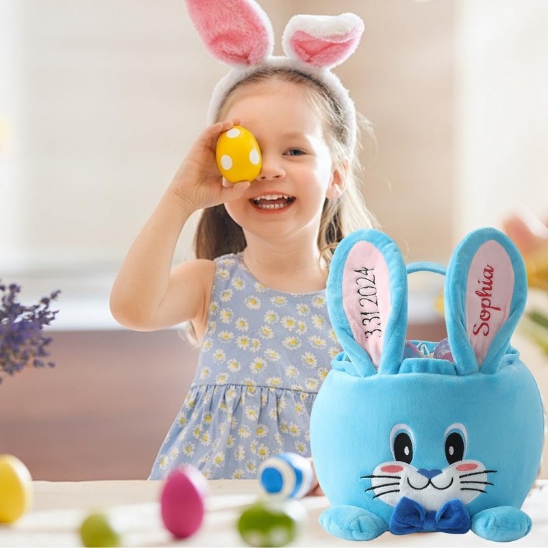 - High-Quality Materials - Crafted from soft and durable plush fabric, ensuring the custom bunny basket a comfortable touch that children will love. Due to the high-quality materials and craftsmanship, the bunny ears can be easily adjusted to stand upright once you receive the package, and the basket maintains its shape nicely.