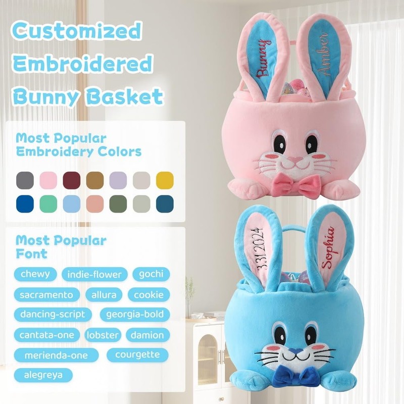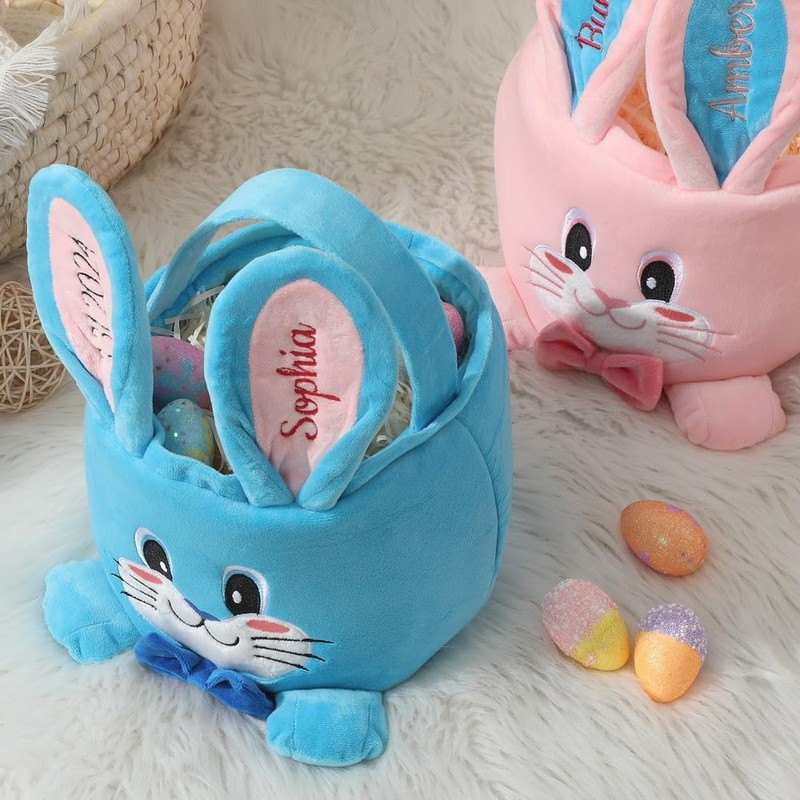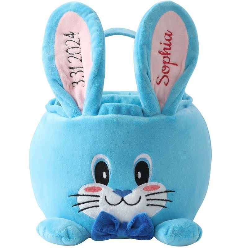 - Personalized Easter Basket - You can have a name or date embroidered on the bunny ears. The embroidery is neat and and beautiful, making it a unique easter basket gift and delightful surprise for friends and family.