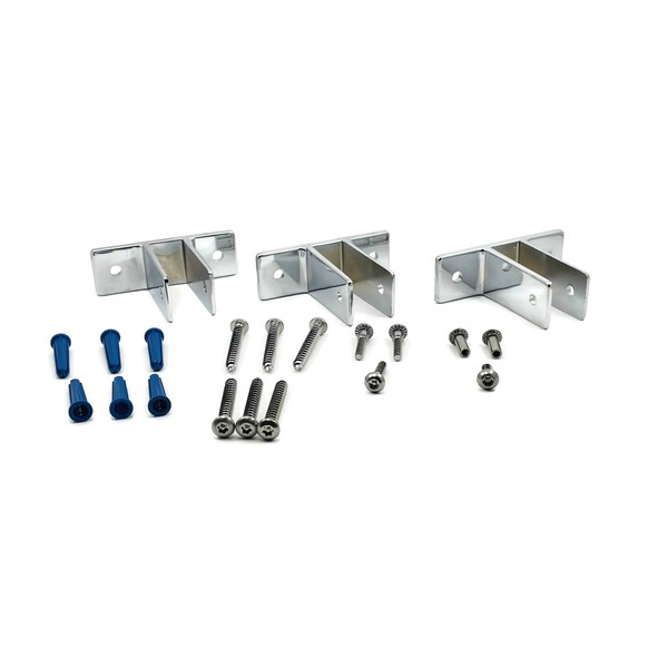 - Three 2-ear brackets suitable for a 7/8 in. thick urinal screen of metal, laminated plastic or wood panels