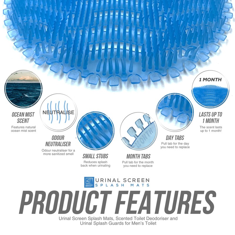 - Long-lasting fresh fragrance urinal sieves – choose between cherry or ocean mist fragrance, the two classic fragrance variants of our urinal mats. The scent of these toilet air fresheners can last up to a month and it acts as an odour neutraliser for a more disinfected smell of toilet and bathroom for men.
