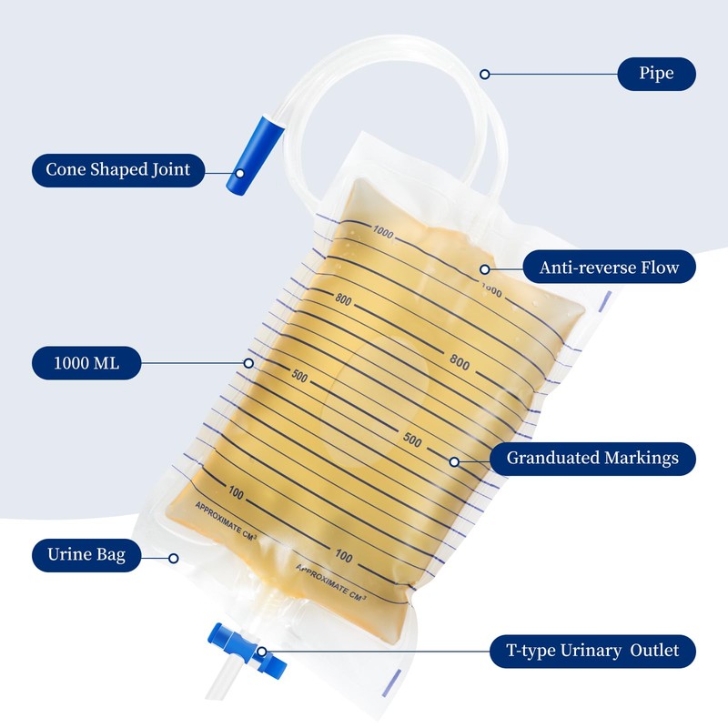 - Anti-Reflux Design - The urine bag features an anti-reflux valve that prevents urine from flowing back into the bladder, reducing the risk of infection.