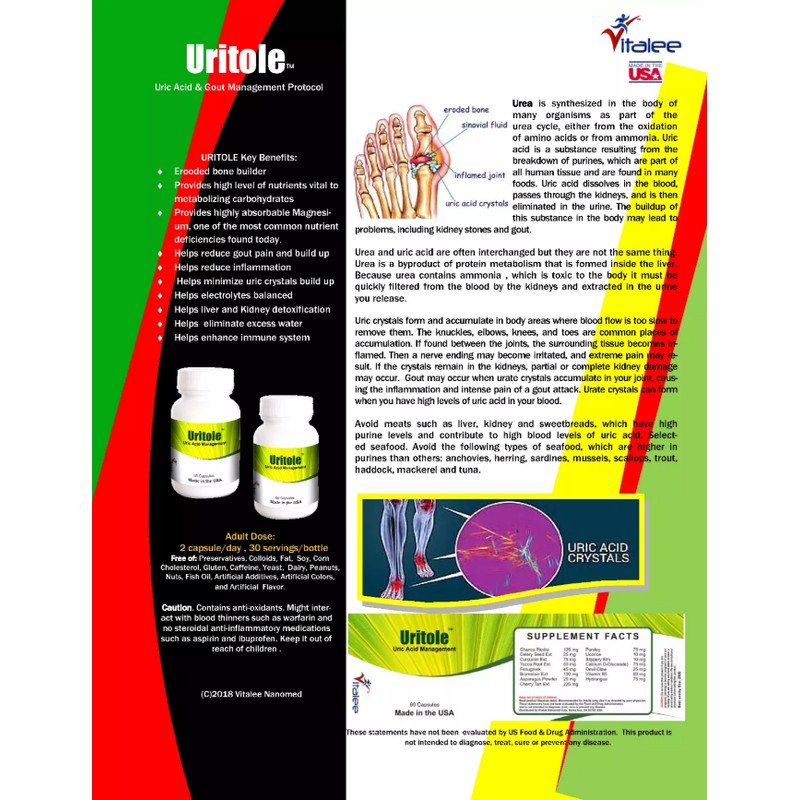 Uritol-Oxalate Stone Stoper, Gout Relief and Uric Acid buildup Flush (Caps 60ct)