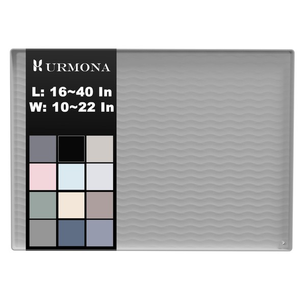 URMONA 16'' x 10'' Waterproof Silicone Under Sink Mat Cabinet and Counter Protector, Shelf Liner for Kitchen and Bathroom, Storage and Organizers, Litter Mat, Pet Cat Puppy Essentials(Light Grey)