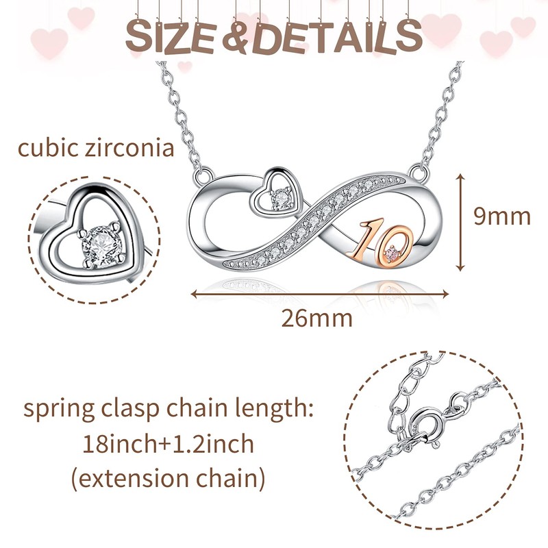- 💕 Design Inspiration 💕 The necklace with numbers is a combination of a heart necklace and an infinity necklace, symbolizing endless love. Every moment is the best time. 10th anniversary or 10 years old birthday is a memorable milestone in her life. Give the romantic necklace to your lover and express unlimited love in a limited time.