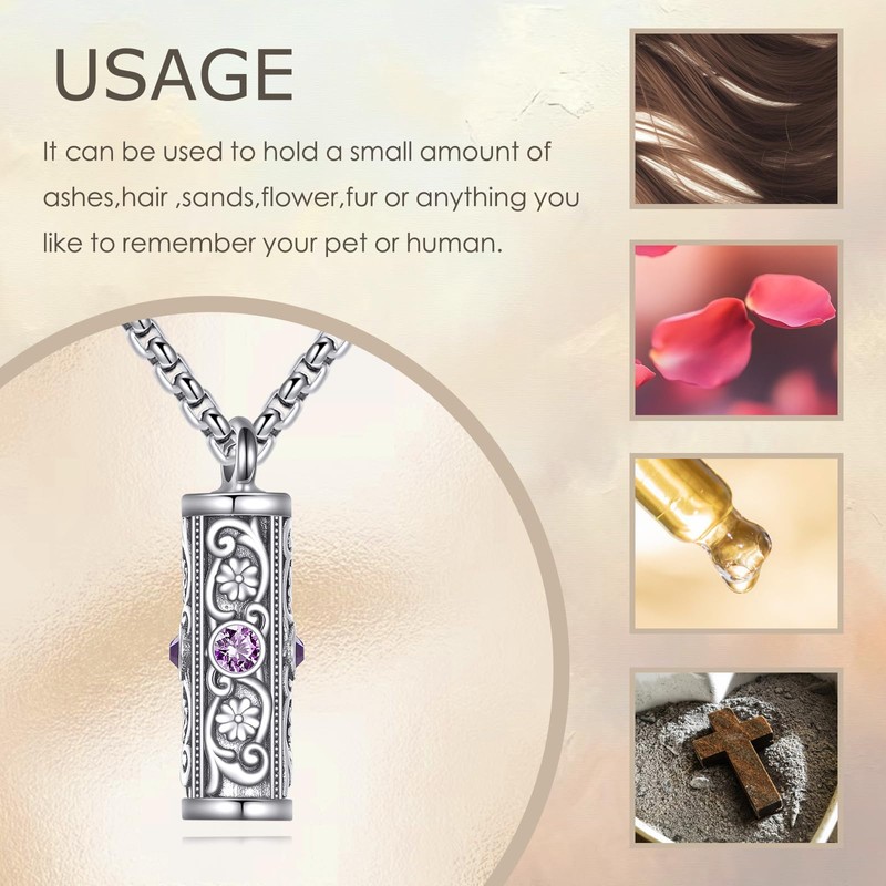 - 💕urn necklaces Design: One sterling silver floral urn necklaces for ashes with a beautiful and detailed flower and leaf pattern. A beautiful diamond sits at the center. This urn necklaces for ashes is elegant and bohemian at once. Screw secures a tight seal to keep your pet or human urn ashes. A rhinestone cremation jewelry to remember a special one and keep them close to your heart at all times.
