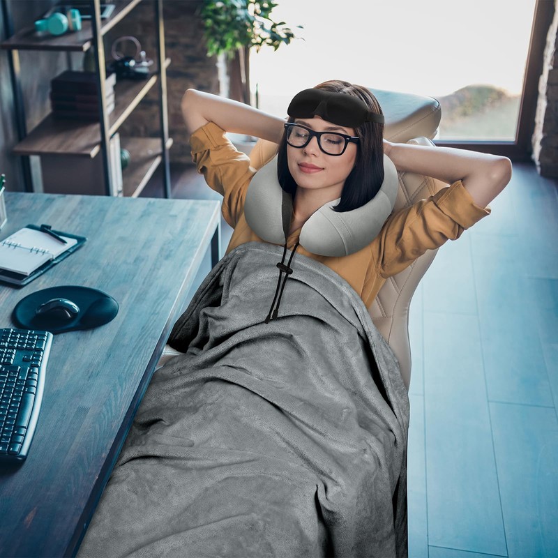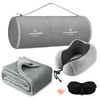 urnexttour Travel Pillow and Blanket Set Neck Pillows Travel Essentials with Sleep Mask for Airplane Car Memory Foam Grey