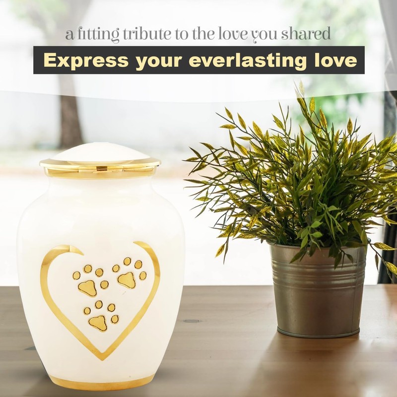 URNS OF DIGNITY Paws Legacy Memorial Pet Cremation Urns for Dogs and Cats Ashes - A Loving Resting Place for Your Special Pet, Pet Urns with Velvet Bag (Non Customize, Whiite Gold)