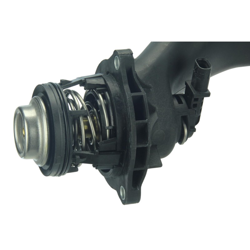 - Thermostat housing assembly is manufactured to factory housing dimensions for easy bolt-on installation and reliable hose connections