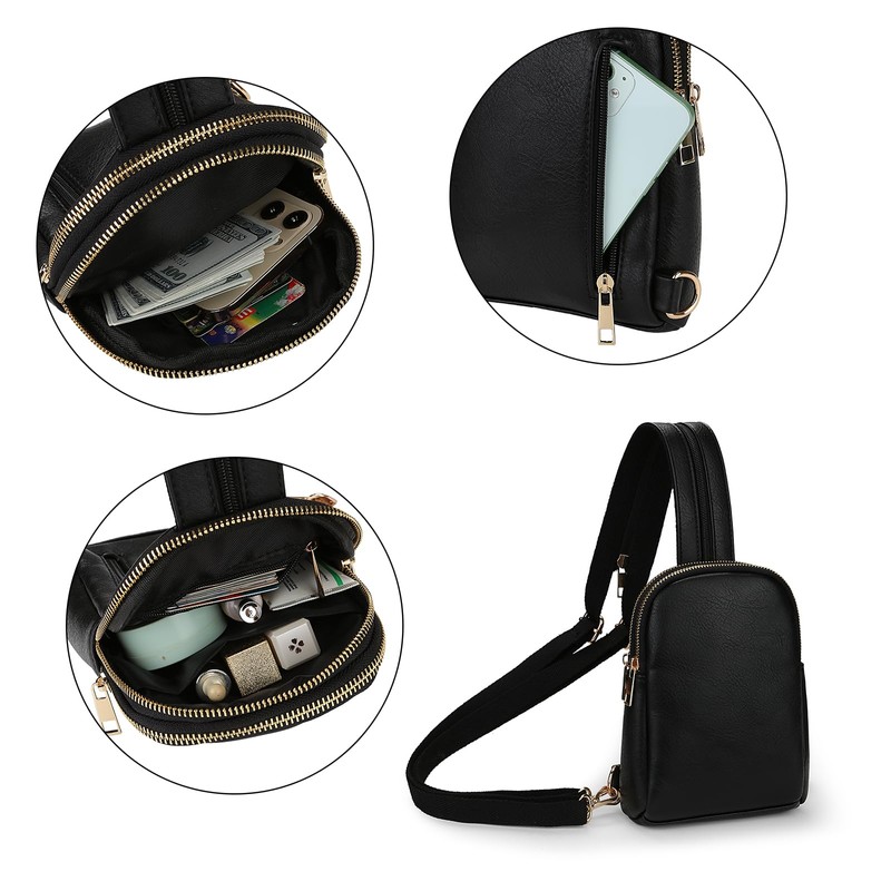 Uromee Sling Bag for Women Crossbody Purse Vegan Leather Fashion Fanny Pack Chest Bag Convertible Small Backpack