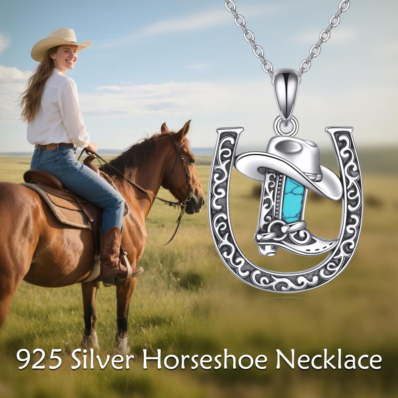 URONE Horseshoe Necklace 925 Sterling Silver Cowgirl Cowboy Boot Pendant Turquoise Western Jewelry Gifts for Women Men