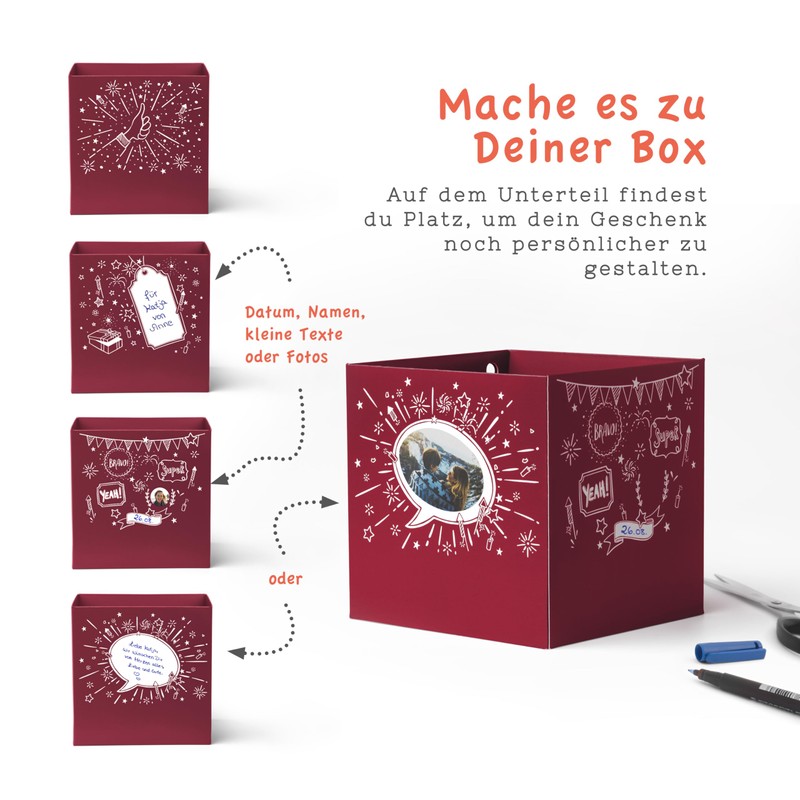 - Creative – Our gift box offers the great opportunity to creatively wrap money gifts, vouchers or larger surprises such as perfume, jewellery or even small technical devices for Christmas and create unique memories