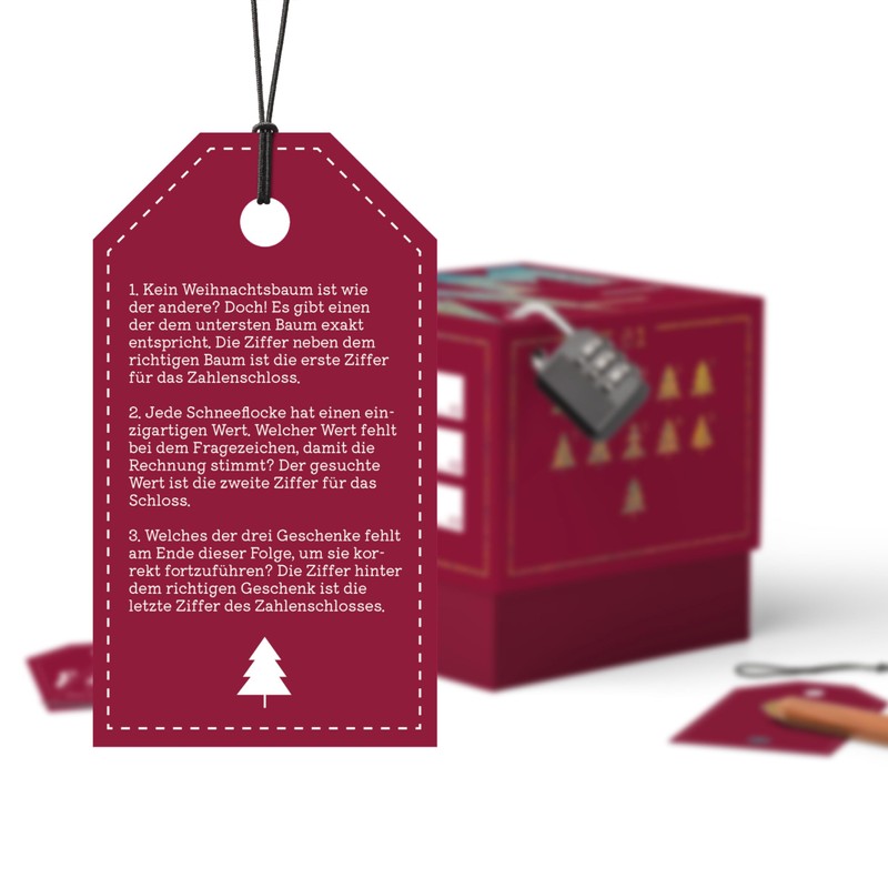 - Exciting – The recipient must first solve three search and puzzle tasks around a Christmas story to crack the combination lock of the box and get the Christmas gift