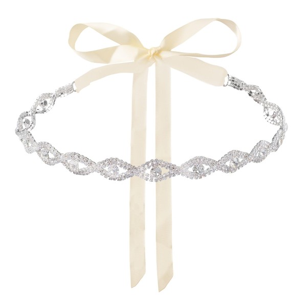 - 【EXQUISITE DESIGN】: This is a bride's belt with rhinestone crystal edging. It is inlaid with large silver artificial crystals. The beige ribbon is tied behind the waist, solemn and elegant.