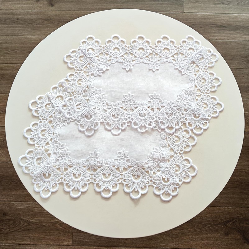 - 【DISTINCTIVE DESIGN】The white background with hidden bark patterns in the middle is low-key and exquisite, and the thick lace trim makes this small tablecloth more delicate, fashionable, and visually hanging.