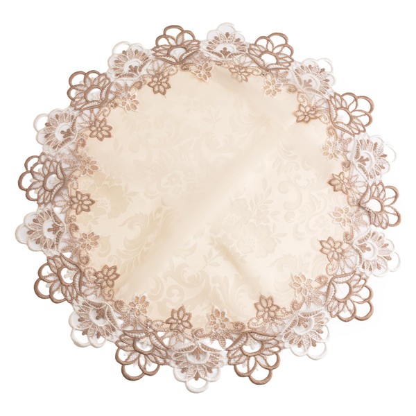 - 【PACKAGE INCLUDE】:You will receive a 60cm * 60cm Round beige linen tablecloth with elegant lace design, suitable for decorating any kitchen or dining table.