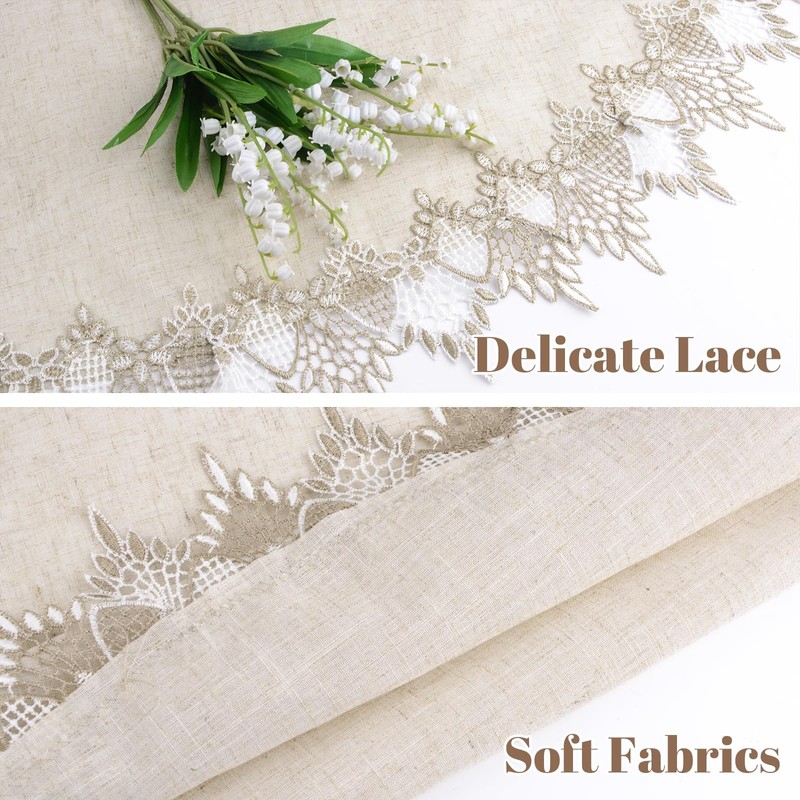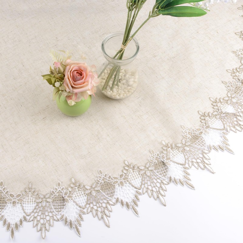 - VERSATILE DESIGN Linen texture surrounded by elegant embroidery lace, heavy macrame lace border makes this small tablecloth more exquisite, fashionable and beautiful draped. Paired with a beige hue, is suitable for the vast majority of decoration styles and can be used as a different type of home decoration. Whether vintage or modern, minimalist, these exquisite tablecloths add a touch of elegance and happiness to your home and room