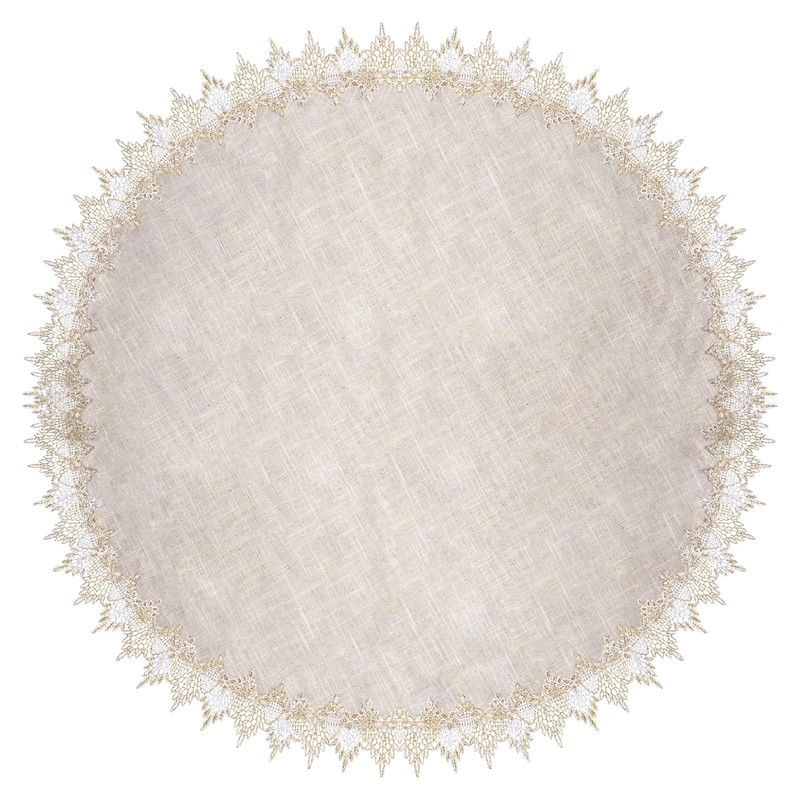 URROMA Round Linen Doilies, 120 cm, Beige Tablecloth with Lace Trim, Round Tablecloth, Coffee Table, Dustproof Pad for Dining Room, Cow