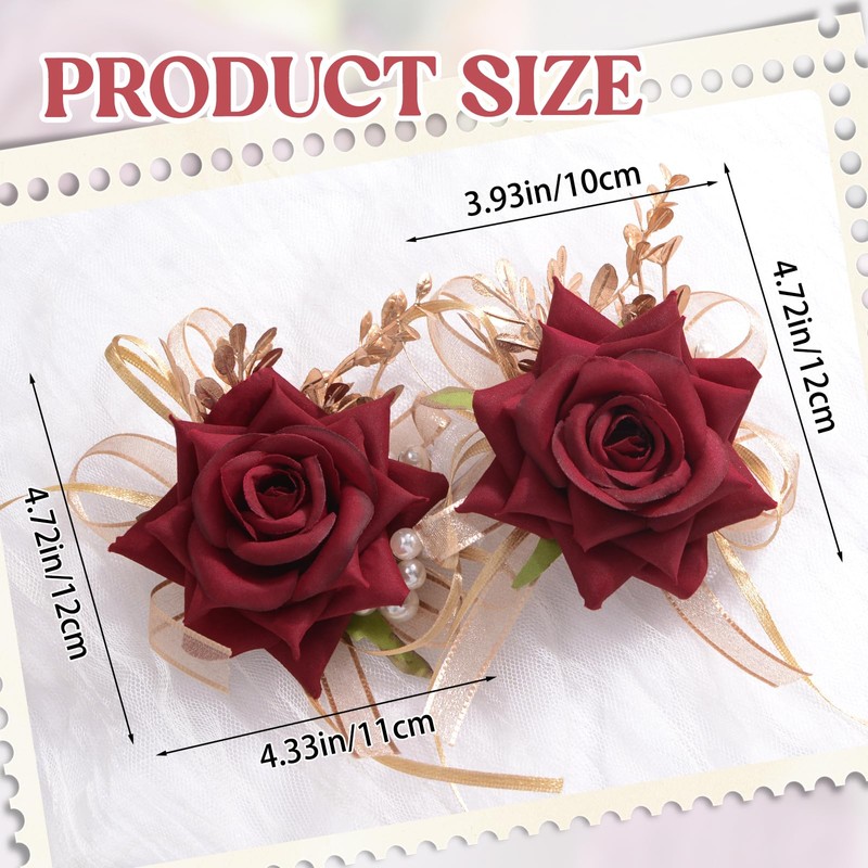 - 【PRODUCT DETAILS】You will receive 2 sets of red rose and yellow ribbon wrist flower sets. The size of the chest flower is 12*11cm/4.72*4.33in, and the size of the wrist flower is 12*10cm/4.72*3.93in.