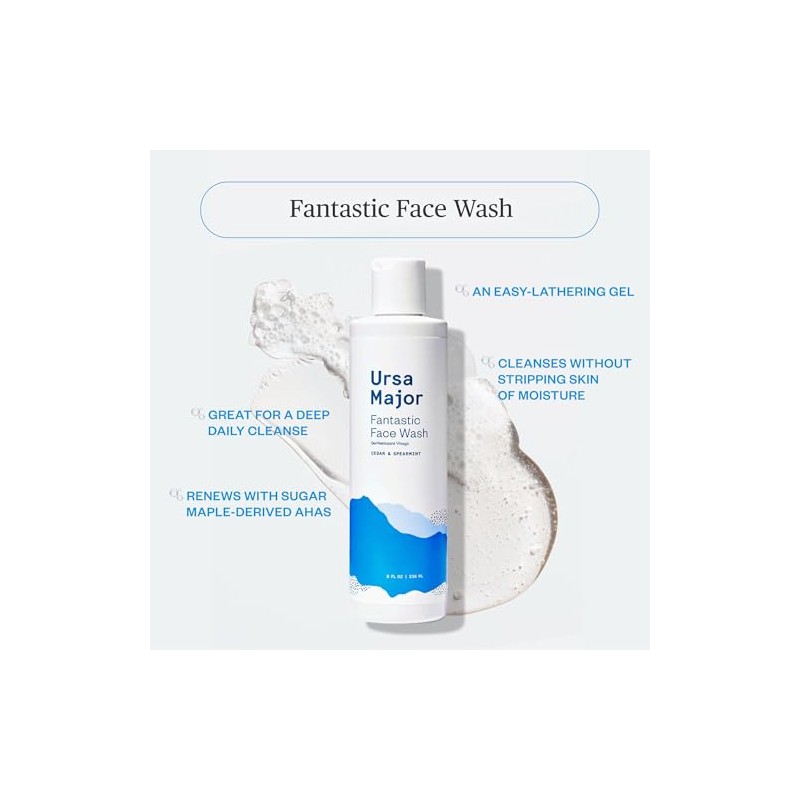 π β Ursa Major Fantastic Face Wash | Natural, vegano y sin crueldad | Limpiador facial de espuma diaria para hombres y mujeres | 8 onzas β π