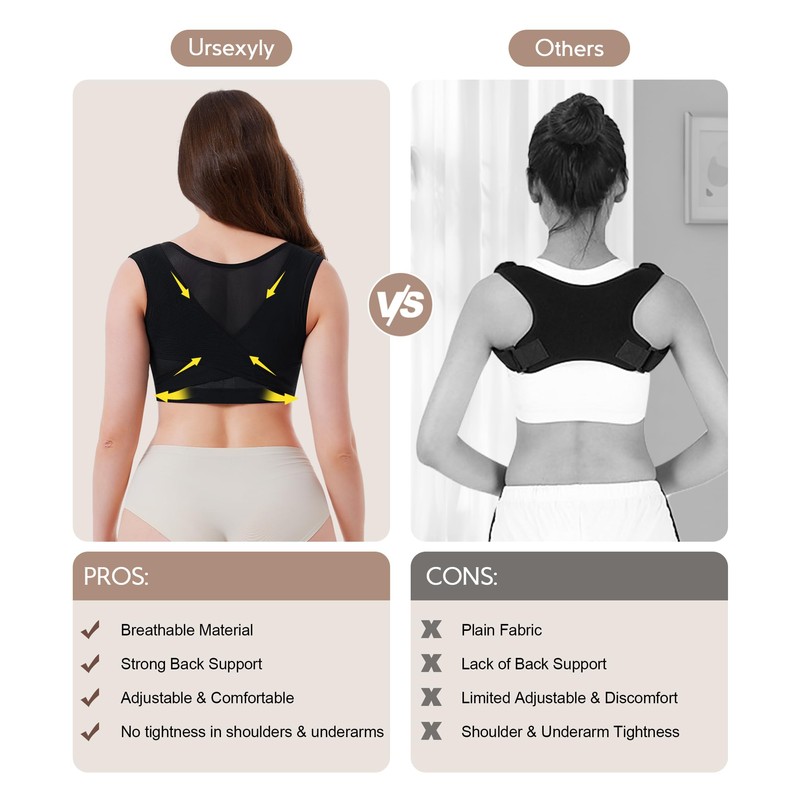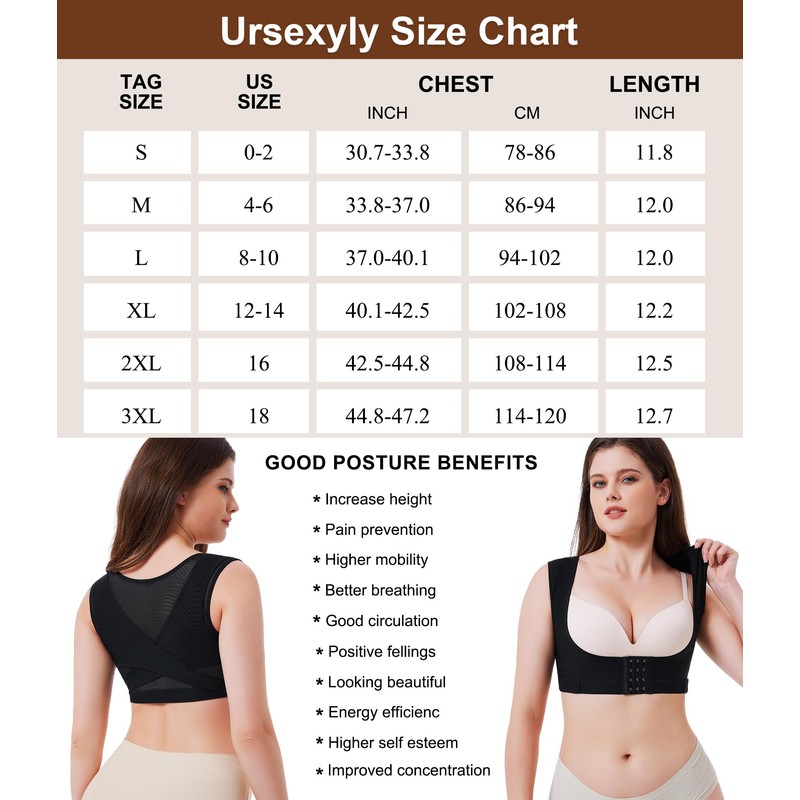 URSEXYLY Upper Back Brace for Women Breathable Posture Corrector Posture Support Back Straightener Pain Relief(Black,2XL)
