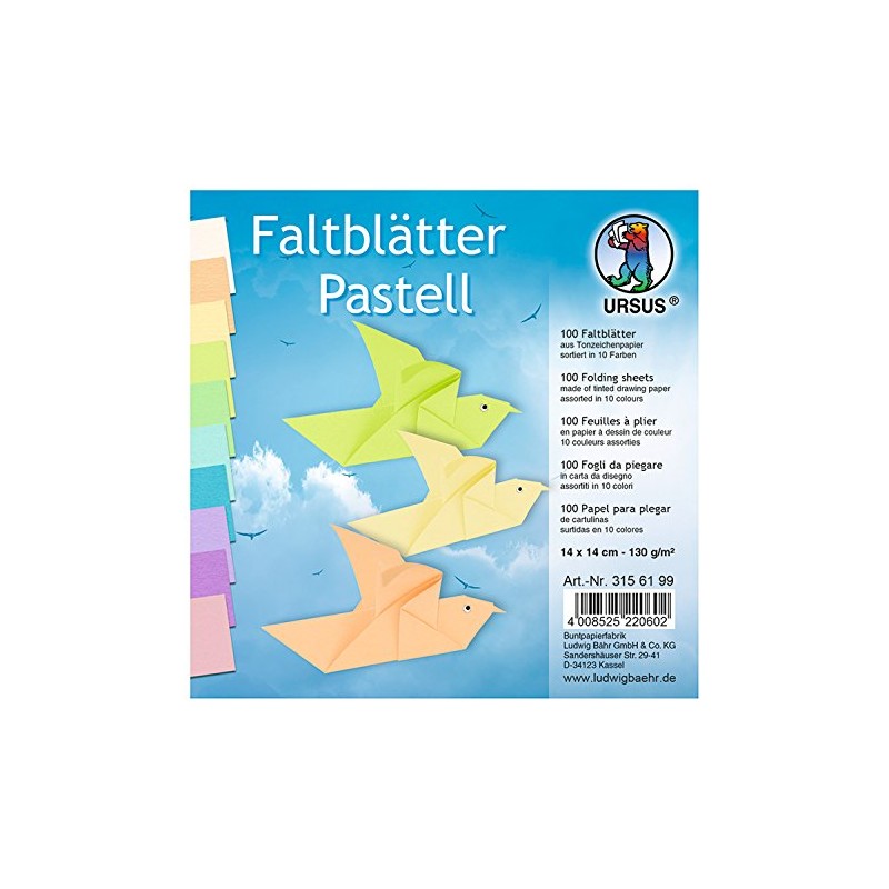 Ursus 3156199 Folding Sheets, Pastel 14 X 14 cm 100 Pages in 10 Assorted Colours