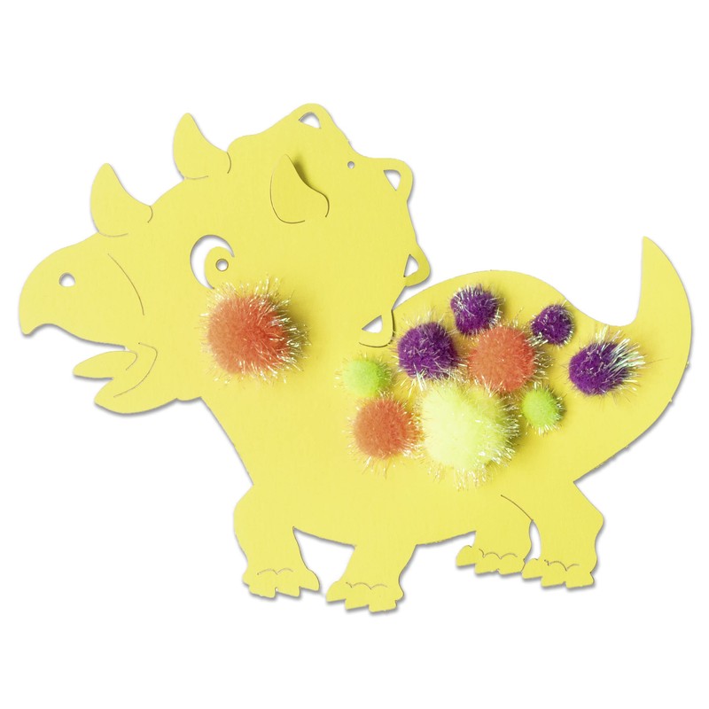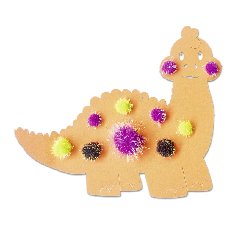 • Contents: 6 sheets of photo card in 6 colours for 8 different dinosaur motifs, 1 bag of colourful glitter pom poms