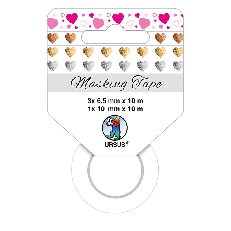 Ursus 58850002 Masking Tape, Hearts, Set of 4