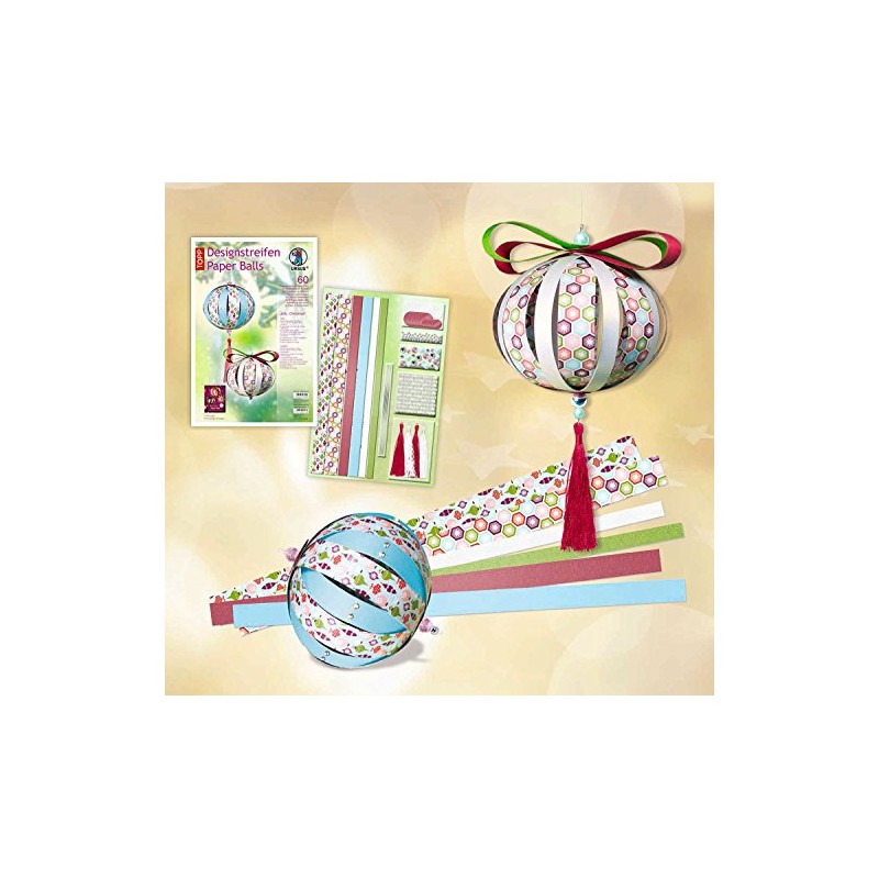 Ursus Jolly Christmas 23500099 Paper Balls Design Strips for up to 8 Paper Balls, Diameter Approx. 10 cm, 60 Strips with Accessories, Ideal for Crafting Individual Christmas Baubles