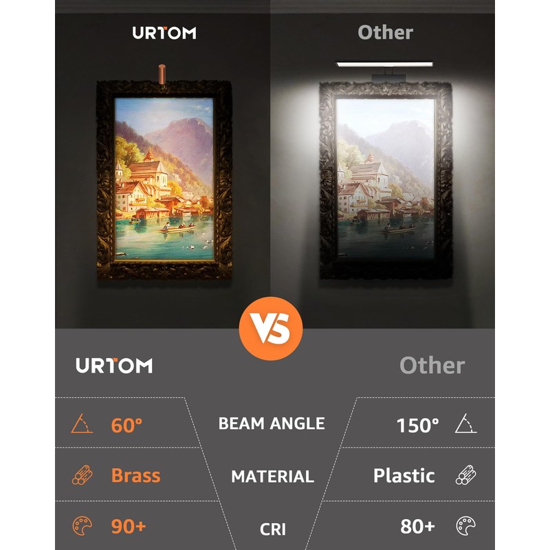 URTOM Plug in Picture Light Dimmable Art Lights for Paintings Remote Control 3000K Picture Frame Light with Timer CRI 90 LED Picture Lights for Wall Display Artwork Portrait Gallery, Copper Body