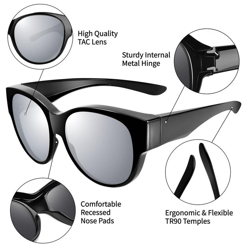 - EXCELLENT LARGE CAT EYE DESIGN: Womens fitover sunglasses with polarized lenses are classic square shape, large shades offer greater coverage UV protection for your eyes. Perfect as fashion sunglasses for spectacle wearers, womens accessories and daily wear.