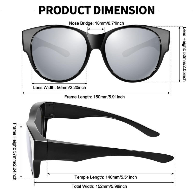 - FIT OVER SUNGLASSES FOR WOMEN: These polarised sunglasses over glasses are specially designed for women who wear glasses, easily wear over existing glasses (frame length within 5.74 inches & height within 1.97 inches). They can be used without normal glasses underneath. Fashion, trendy and comfortable even you must wear regular glasses!